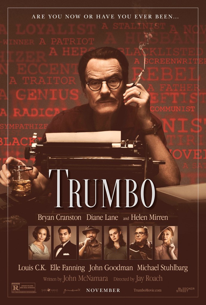 Dalton Trumbo’s story is an interesting one. He was a screenwriter who ended up not being able to work, due to being blacklisted for being a communist. However, being as resourceful as he was, he got connections and was able to crank out several films under various pseudonyms. He won at least two Oscars, neither of which had his name on them. I had never heard of him before, but director Jay Roach, of all people (the man behind Meet the Parents, Meet the Fockers, and the Austin Powers movies), has created a skillfully-made biopic. Bryan Cranston is wonderful as the title character. After being so famously known for starring in what many believe to be one of the best television shows of all time, making us forget about that iconic character is no small feat, yet Cranston marvelously disappears into Trumbo, and is a delight to watch. Many familiar faces populate the superb supporting cast, which includes Diane Lane, Helen Mirren, Roger Bart, John Goodman, and Louis CK. I began reading the lukewarm 2 1/2 star review on Roger Ebert’s website, but stopped before I got halfway through. I don’t know what was factual, or whether these real-life people were accurately portrayed, and I don’t care. Trumbo is effective and fun to watch.